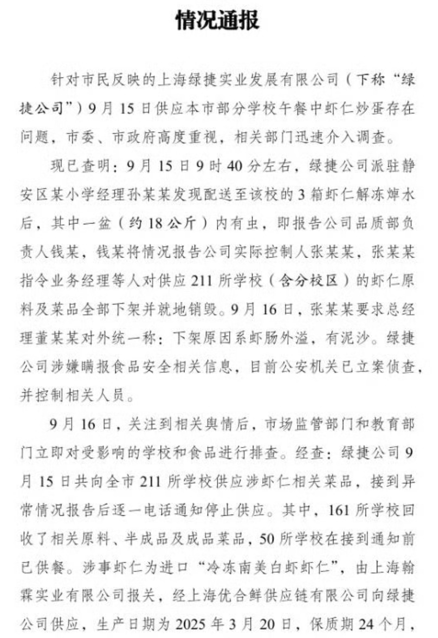 西贝的“预制菜”风波炸出了上海校园餐巨头“绿捷”。不少学生和家长反映9月15日的“虾仁炒蛋发臭”盛宝策略,剧情跌宕起伏我就不赘述了,最终在多个部门的介入下,上海方面给出了一份详细的通报。全文如下。