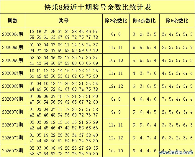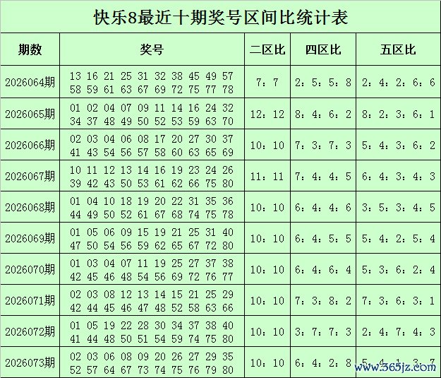 福彩快乐8第2026073期开奖回顾:02 03 06 08 09 20 26 27 29 35 52 57 64 67 73 74 75 76 79 80,其中奖号二区比为10:10,四区比为6:4:2:8,五区比为5:4:1:3:7,除2余数比为10:10,除4余数比为6:4:4:6,除5余数比为4:3:5:3:5。